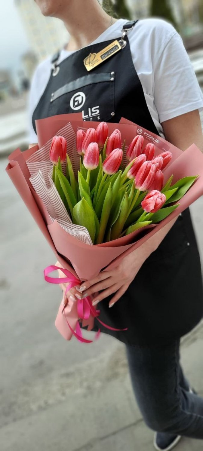 | Описание 15 тюльпанов,упаковка . Внимание: цена цветов может меняться в зависимости от сезона! |